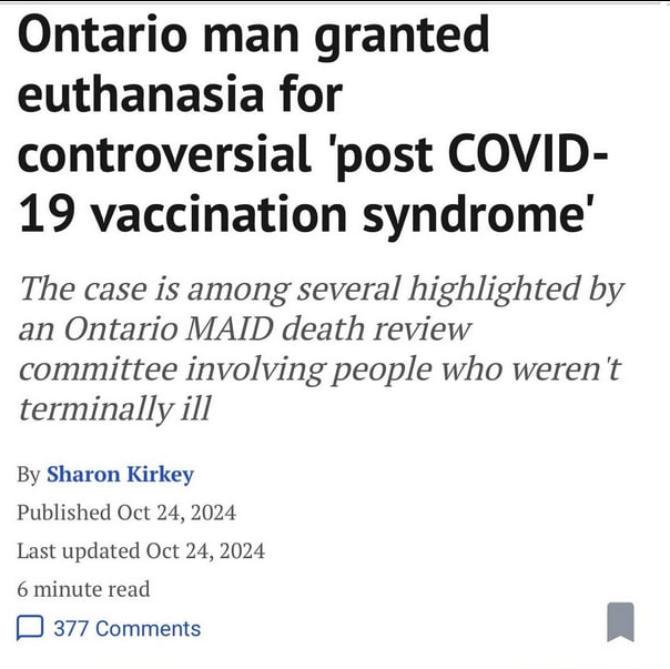 The situation is so bad that in Canada they are euthanizing people with post COVID vaccine syndrome… whatever this new syndrome is, they’re killing people to silence the victims and to bury the evidence. These people need to pay for their PLANDEMIC lockdowns because they’re preparing to do it again with the transhuman genocide…